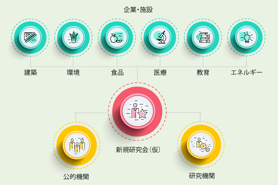 研究会は、公的機関および研究機関と様々な業種の企業・施設の間を繋ぎ、